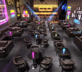 Stylish bar stools and high tables that combine trendy industrial or luxury designs with robust construction for busy nightlife environments.