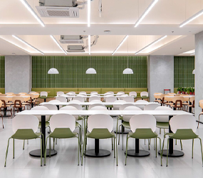 Efficient and easy-to-clean furniture systems for schools, offices, and industrial cafeterias, focused on comfort and high-traffic resilience.