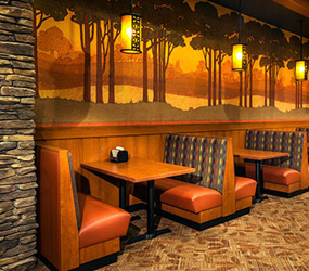 Custom booths, tables, and chairs designed to enhance the dining experience while maximizing seating capacity and long-term durability.